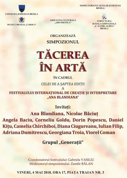 O surpriză a unei ediții de festival despre tăcere, dar în care vocea ei s-a auzit limpede, clară într-un entuziasm de esență basarabeană. Nicolae Băciuț, Brăila, 5 mai 2018”